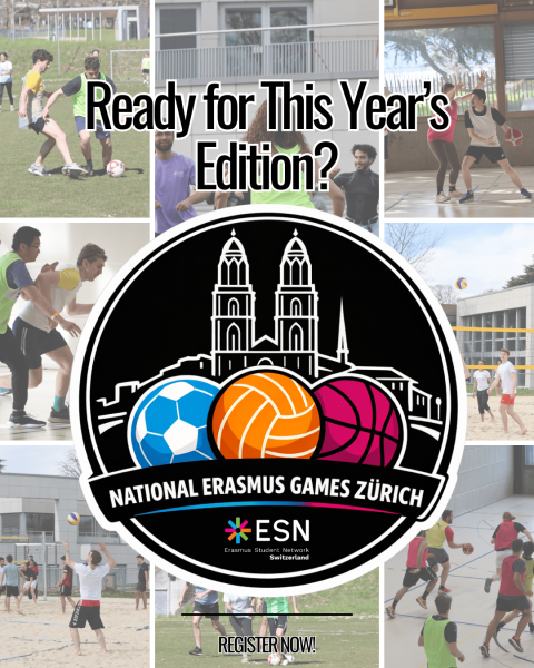 Do you like doing sports with your friends? Winning competitions? Meeting up with exchange students and internationals from other universities in Switzerland? Then get ready for the National Erasmus Games, a friendly sport competition held in Zürich this year!! You will join a team with which you will compete in basketball, volleyball, and futsal! Represent the colors of ESN Lausanne and challenge the other ESN teams throughout Switzerland. You can win cool prizes and obviously the honour of calling yourself the winners of the NEG. There is also the possibility of signing up as a spectator. So, even if you don’t want to compete, you can still enjoy the atmosphere, cheer for your section and take part in the experience.
